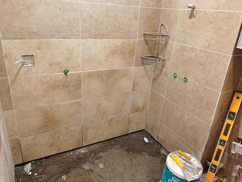 衛(wèi)生間瓷磚鋪貼:基層處理--抹底子灰--彈線排磚--侵磚--鑲貼--擦縫--交工驗收